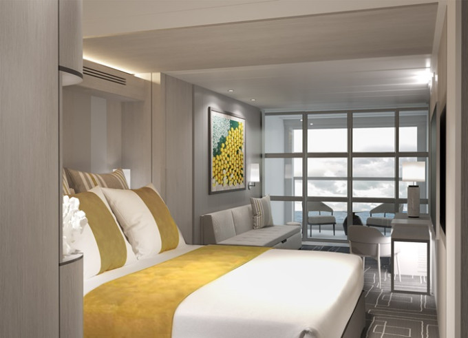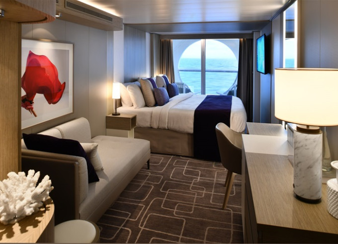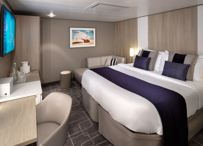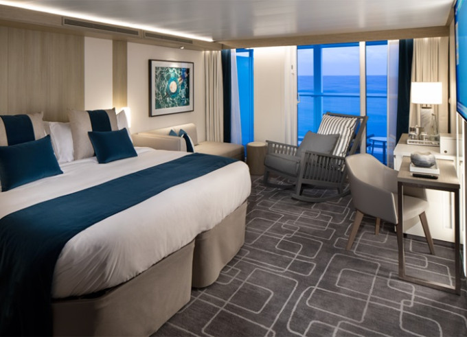 - Kajuty sú umiestnené v blízkosti lodného Spa. K ich vybaveniu patrí posilnený systém vzdušnej filtrácie, posteľ Queen-Size (v kategóriách Edge King-Size), veľké zasúvacie sklenené dvere, exkluzívne posteľné prádlo eXhale®, veľkorysé skladovacie priestory.
