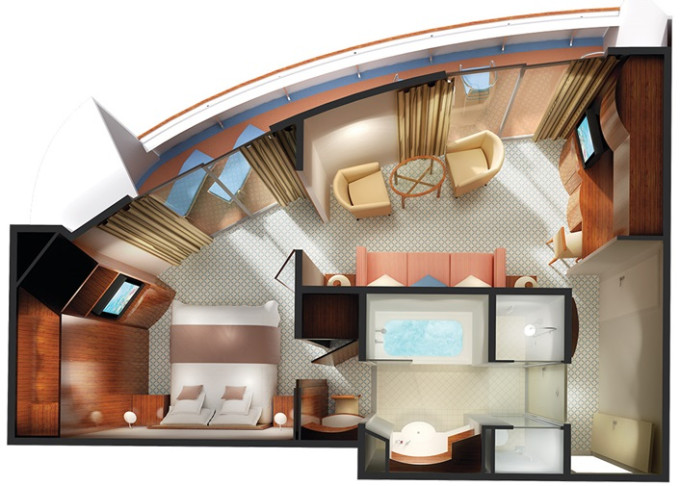 | SA - Owners Suite 76 m² / balkón 23 m². Vírivka. 11. paluba - vpredu. Max 4 osoby. Výhody Suite. | 27 056 € 13 528 € za osobu |