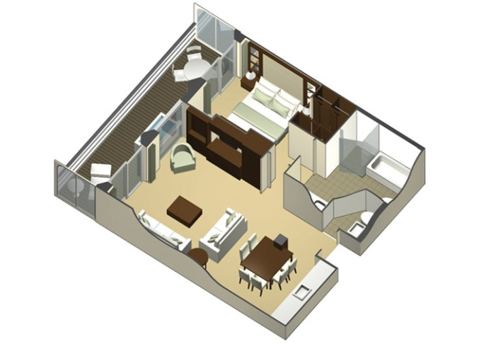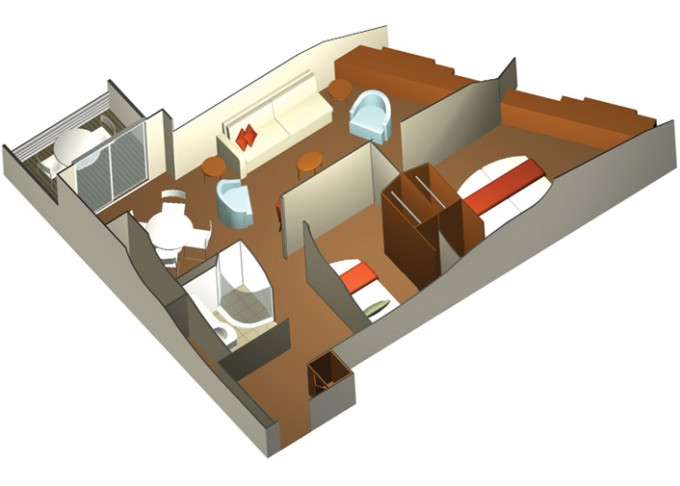 S1 - Sky Suite 28 m² + balkón 7 m². 6. až 12. paluba. Max 4 osoby. Výhody Suite The Retreat. 9 594 € 4 797 € za osobu