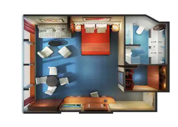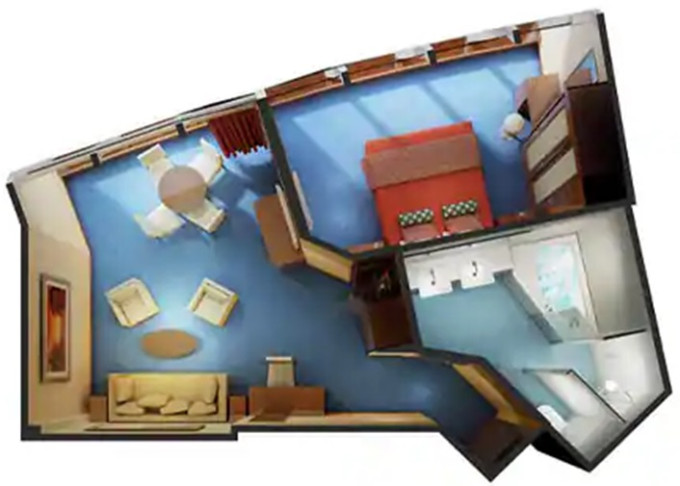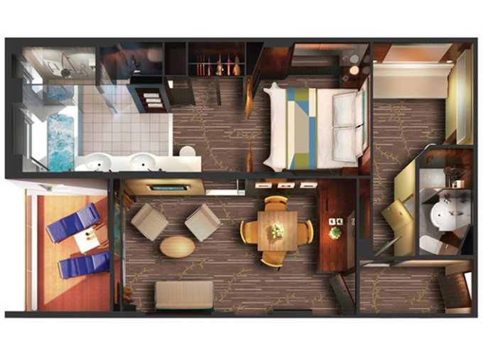 | S4 - Deluxe Family Suite - 2 spálne 54 m² / balkón 5 m². 11. paluba - vpredu, stred. Max 6 osôb. Výhody Suite. | 4 482 € 2 241 € za osobu | ||