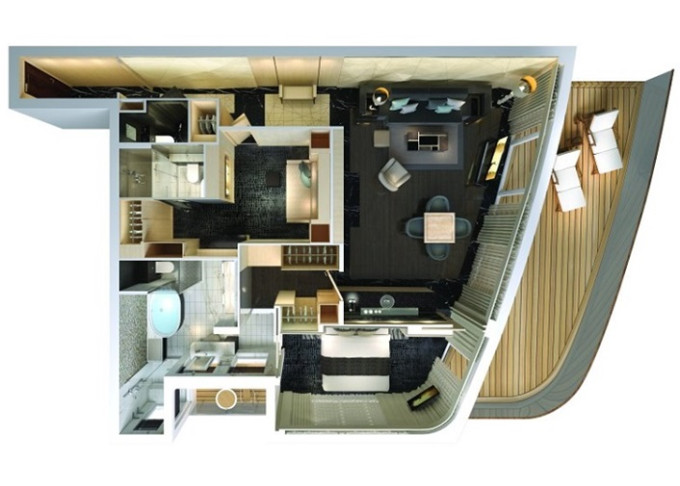 | H2 - The Haven Deluxe Owner's Suite 136 m² / balkón 45 m². 18. paluba vpredu. Max 6 osôb. Výhody The Haven. | 16 466 € 8 233 € za osobu |