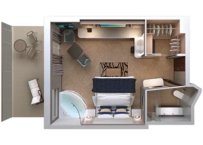 | HE - The Haven Courtyard Penthouse od 34 m² / balkón od 9 m². 17,18. paluba vpredu. Max 3 osoby, Výhody The Haven. | 7 028 € 3 514 € za osobu | ||