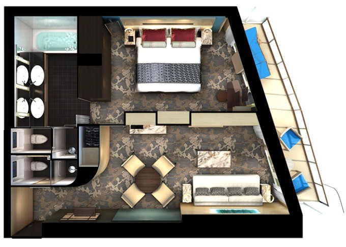 | HJ - The Haven Suite s balkónom 35 m² / balkón 5 m². 14. paluba - stred. Max 4 osoby. Výhody The Haven. | 5 412 € 2 706 € za osobu | ||