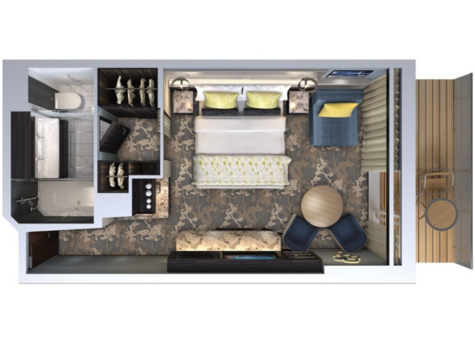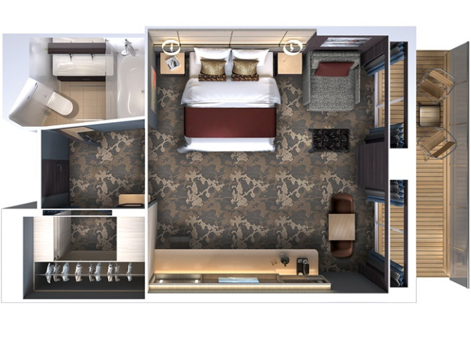 | HE - The Haven Courtyard Penthouse od 34 m² / balkón od 3 m². 17,18. paluba - vpredu. Max 3 osoby. Výhody The Haven. | 5 772 € 2 886 € za osobu | ||