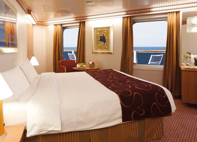 - Ubytovanie v kajute vybranej kategórie. Základné vybavenie: kúpeľňa s WC a sprchovacím kútom, 2 lôžka spojiteľné do manželskej postele, skrine, nočné stolíky, toaletný stolík a stolička, nastaviteľná klimatizácia, interaktívna satelitná TV s plochou obrazovkou, trezor, sušič na vlasy, uteráky a posteľné prádlo, Wi-Fi pripojenie (za poplatok), 24/7 kajutová služba (za poplatok).