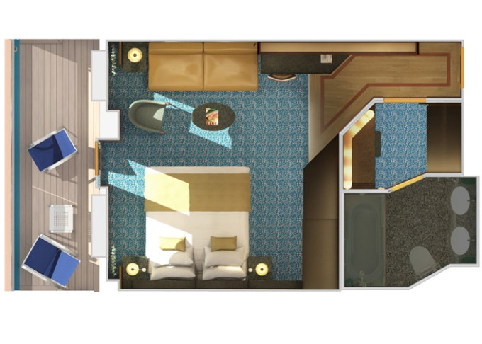 | OS - Ocean Suite od 23 m² + balkón od 6 m². 7. paluba vpredu, stred. Výhody Suite. | 2 032 € 1 016 € za osobu | ||