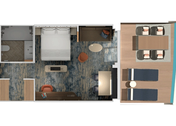 | HU - Suite Havana Cabana Corner 33 m² + vonkajšie rohové patio 15 m². 8. paluba vpredu. Max 3 osoby. Tropický štýl, vstup do exkluzívnej zóny Havana. Výhody Suite. | 2 938 € 1 469 € za osobu | ||