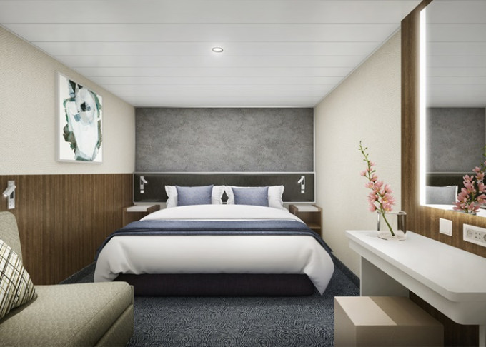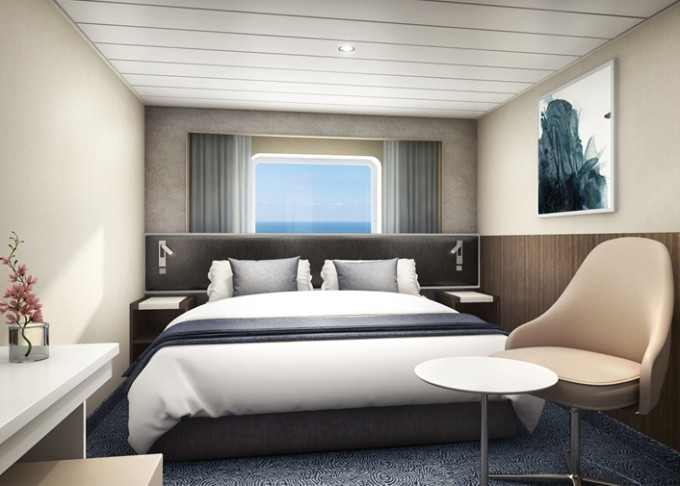 | O3 - Vonkajšia kajuta Deluxe 26 m². Veľké neotvárateľné okno. 8. paluba - vpredu. Max 3 osoby. | 7 754 € 3 877 € za osobu | ||