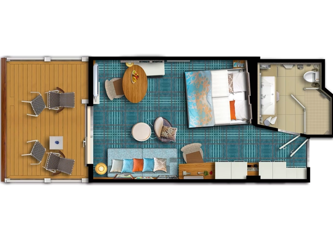 | VEPO - Kajuta s terasou Premium 17 m² + balkón 30 m² s hojdacou sieťou a ležadlami. 7-11. paluba. Max 3 osoby. | 2 346 € 782 € za osobu |