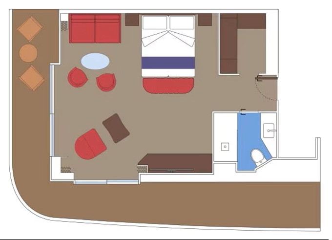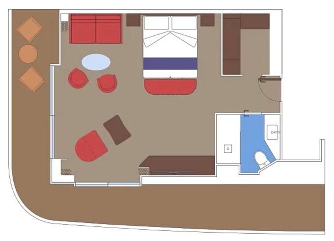 - Raňajky servírované do kajuty a 24-hodinový kajutový servis (za poplatok)